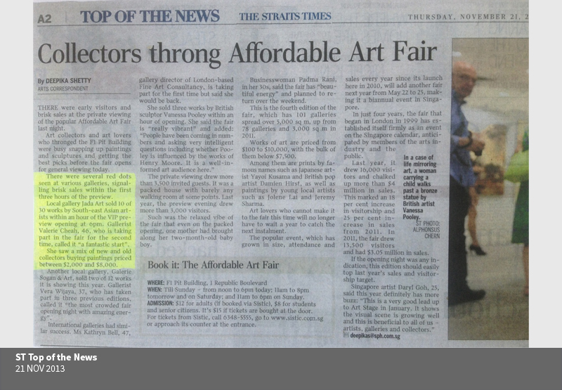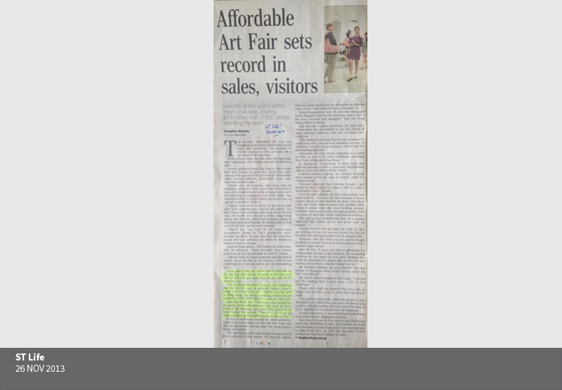 at the F1 Pit Building, Singapore. This art fair is also hosted internationally including London, New York, Milan, Hong Kong and Brussels.