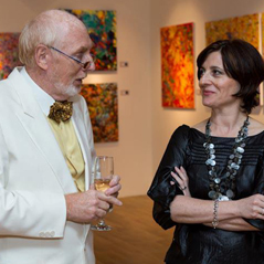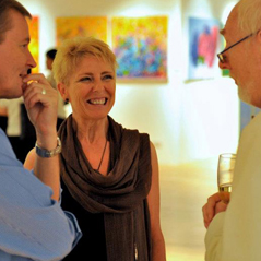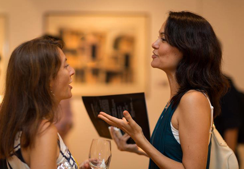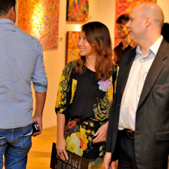 family and friends. Her international and multicultural experience is reflected in her abstract art which finds inspiration from universal elements and shared