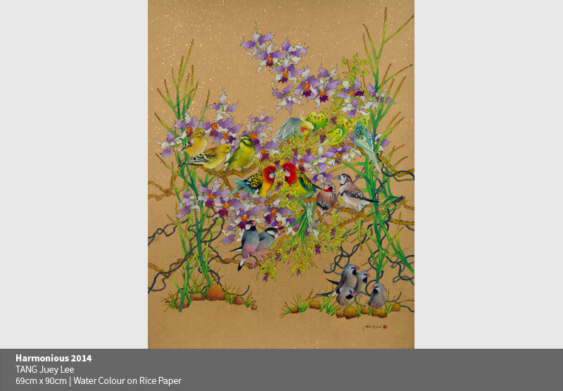 Tang studied a component of Chinese painting during his diploma course, which included traditional brush painting and calligraphy. This technique of fine brushwork has